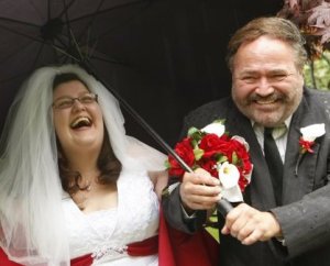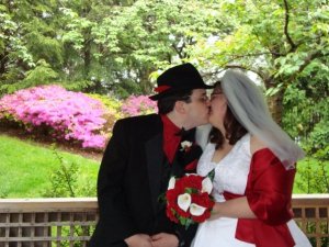 They’d found the perfect wedding venue, a beautiful Japanese garden with decorative bridges over charming streams near riotous explosions of cherry blossoms. She had the perfect dress; when she tried it on, she had finally started to believe maybe she’d been wrong to think love wouldn’t happen to someone like her. Her fiancé would look perfect; they’d found a tux in his favorite colors – black with red accents – and he accessorized it with his black fedora and a katana, because he was her perfect goofball. She’d chosen the perfect song to play when her dad escorted her over the winding paths to the gazebo; she’d heard “Longer” by Dan Fogelberg at a relative’s wedding as a child, and the lyrics had permanently stuck in her mind as the ideal sentiment to begin a life together. Even though they didn’t have a large budget, they’d been blessed with help from dozens of friends and family members, and it had all led up to this day…her wedding, that silly girly thing she’d always pretended not to care about, while being secretly afraid to wish for.
